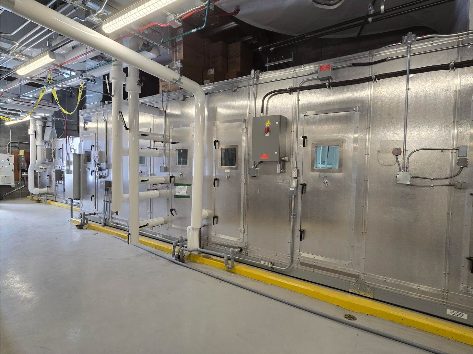 Cependant, la configuration présentait son lot de défis. La salle mécanique, où se trouvent plusieurs des composants principaux, était en hauteur et difficile d’accès. De plus, des protocoles stricts de santé et de sécurité étaient en vigueur, notamment autour des modes de ventilation en contexte de pandémie, ce qui exigeait à la fois expertise technique et respect rigoureux des procédures.